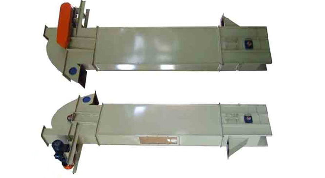 改向滾筒上。鏈傳動(dòng)的斗式提升機(jī)一般裝有兩條平行的傳動(dòng)鏈,上或下面有一對(duì)傳動(dòng)鏈輪,下或上面是一對(duì)改向鏈輪。斗式提升機(jī)一般都裝有機(jī)殼,以防止斗式提升機(jī)中粉塵飛揚(yáng)。