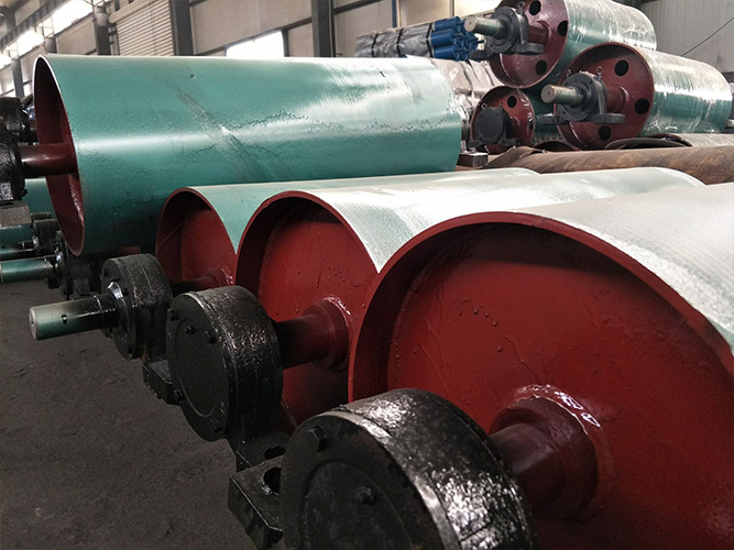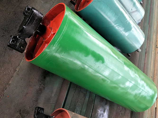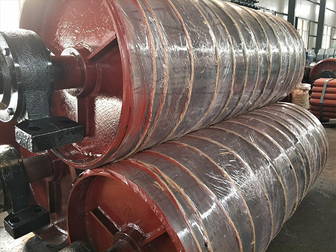 該產(chǎn)品主要是由軸、軸承座、輻板及筒體組成,并且在表面覆蓋橡膠以增大滾筒與輸送帶間的摩擦系數(shù)。