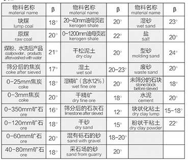 最大傾角見(jiàn)表(二)(向下輸送時(shí)允許最大角為表中之值的80%)