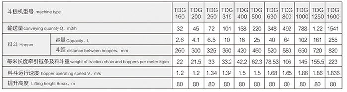 TDG型高效斗式提升機(jī)技術(shù)參數(shù)