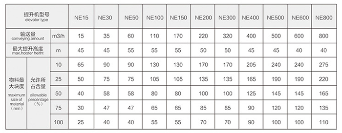 NE斗式提升機(jī)技術(shù)參數(shù)