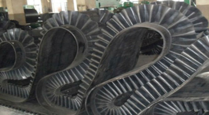 大傾角輸送帶的裙邊設(shè)計(jì)成類(lèi)似于波浪形的形狀,物料向一側(cè)滑落的時(shí)候,就會(huì)被波浪形擋邊擋到原定位置。我們的裙邊高度由50-500不等,都是由特定的模具加工而成。然后通過(guò)二次硫化的方式硫化而成,十分的牢固耐用。