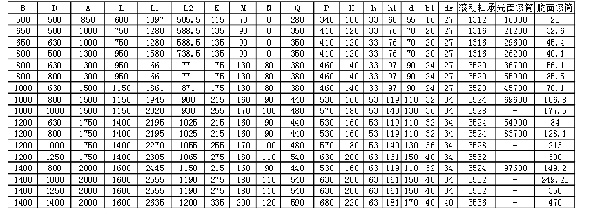 膠面改向滾筒技術(shù)參數(shù)