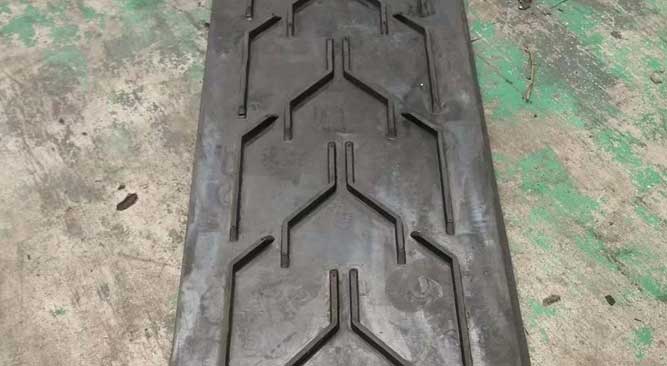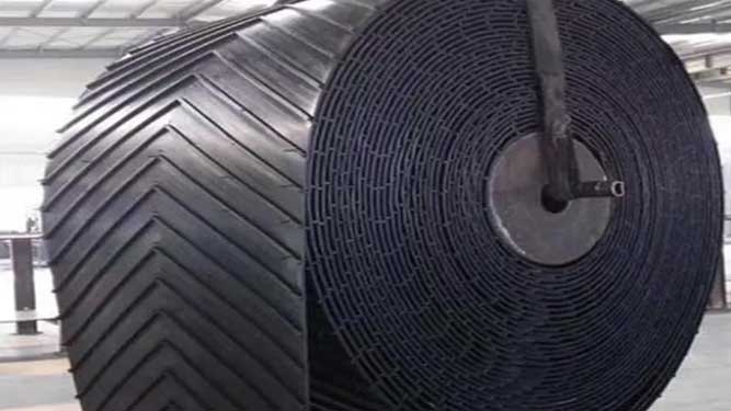 所屬分類:花紋輸送帶 人字形的橡膠帶也分為凸人字花紋和凹人字花紋兩種,可搭配輸送機使用。